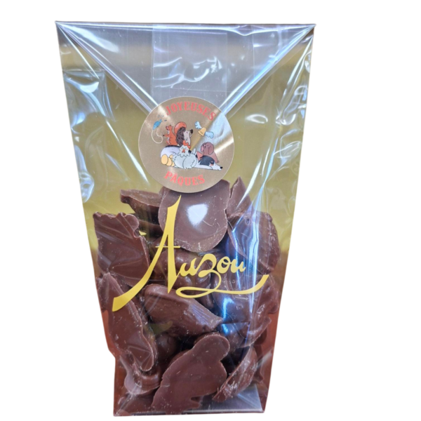 Ingrédients : sucre, pâte de cacao, AMANDE, NOISETTE, beurre de cacao, LAIT entier en poudre, vanille (poudre et extrait), émulsifiant : lécithine de SOJA. Chocolat lait cacao minimum 36% et chocolat noir cacao minimum 65%